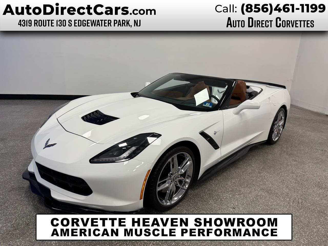 This 2014 Chevrolet corvette stingray Z51 3LT manual 6 speed V8 2-dr convertible is a must see! 25,448 miles, excellent condition and performs perfectly. Artic White exterior with Kalahari leather interior. Loaded with all factory options featuring navigation, chrome wheels, performance exhaust, remote start, heated seats, heads up display, back up camera, and more. A must see and drive to appreciate this tremendous value. Buy with confidence from New Jersey's #1 rated dealer 10 years in a row, 3 generations family owned and operated, and over 70 years delivering the highest level of customer satisfaction. Awarded 2022 Mid- Atlantic Regional dealer of the year.